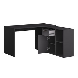 Стол состоит из просторной столешницы, тумбы с ящиком и полок.