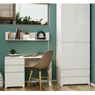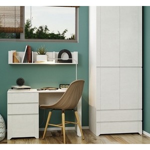 Дополните стол шкафом-стеллажом и открытой навесной полкой, чтобы грамотно обустроить рабочую зону в комнате подростка.