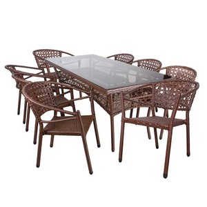 Материал изделия: каркас - металл с порошковым покрытием, плетение - искусственный ротанг, столешница - закаленное стекло.