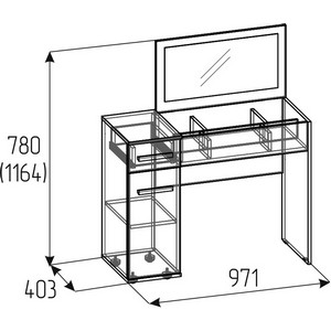 Материалы: ЛДСП 16 мм, кромка ПВХ 0,45 мм, задняя стенка ХДФО, дно ящика ХДФО 3 мм, зеркало 4 мм.
