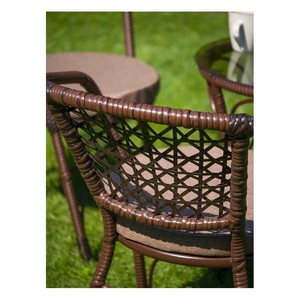 Изящная оплетка спинки, подлокотников и ножек из искусственного ротанга придает стулу изысканный вид и приятную на ощупь текстуру.