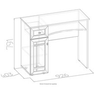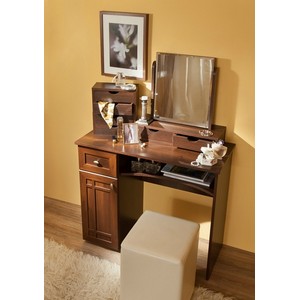 Туалетный стол оснащен тумбой, выдвижным ящиком и нишей под столешницей.