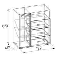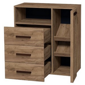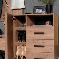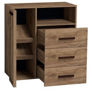 Комбинированная тумба состоит из трех выдвижных ящиков и отделения для хранения обуви за распашной дверцей.