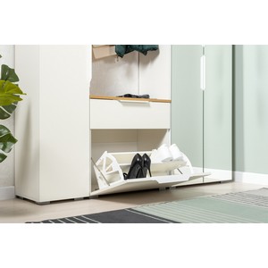 Тумба для обуви Октава 16.127 состоит из выдвижного ящика и обувницы с откидной дверцей.