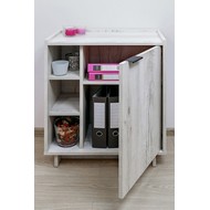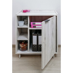 Напольная тумба ФЛЕКС 24 с открытыми нишами и отделением с 2-мя полками скрытыми за распашной дверкой.
