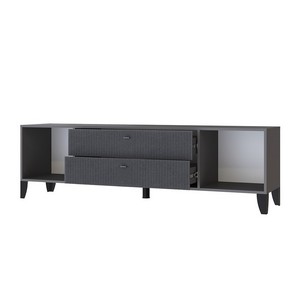 Тумба под телевизор Парус-10 (графит/гранит лофт) имеет фасад с оригинальной фрезеровкой в виде волн, что повышает эстетические свойства данной модели и придает оригинальность. Холодные оттенки делают дизайн гостиной стильным и сдержанным. За счет роликовых направляющих достигается удобство использования ящиков, в которых можно хранить пульты, кабели и другие аксессуары для ТВ.