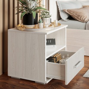 Выкатной ящик на роликовых направляющих и открытая полка.