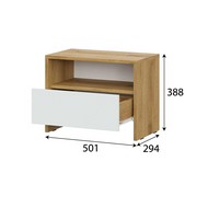 Прикроватная тумба изготовлена из высококачественного ЛДСП, что гарантирует долговечность и устойчивость к механическим повреждениям и выдерживает максимальную нагрузку на верхнюю крышку в 8кг, а на выдвижной ящик — 5–7 кг.