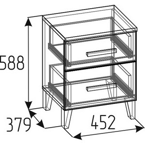 Прикроватная тумбочка с двумя выдвижными ящиками.