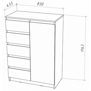 Компоненты, входящие в комплект: 1 дверца, 2 полки, 5 ящиков.