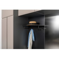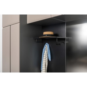 Вешалка выполнена в красивом оттенке антрацит в сочетании с черной фурнитурой.