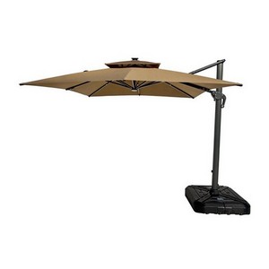 Большой купол обеспечивает обширную тень, а продуманный дизайн делает зонт центральным элементом зоны отдыха.