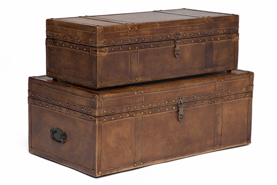 Комплект сундуков Робинзон ROBINZON М-2001 – с таким сундуком мог путешествовать Остап Бендер. Прекрасное качество сундуков, исполненных из кожи буйвола. Потертая кожа в стиле «винтаж». Использовать сундуки можно и в качестве журнальных столиков. Станут отличным декоративным элементом интерьера в стиле «loft».